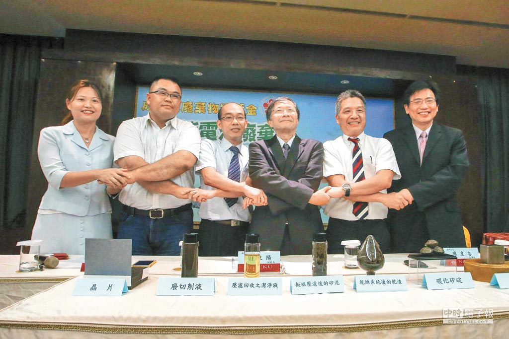 成大副校長(zhǎng)陳東陽(yáng)說,太陽(yáng)能電池是綠色能源核心一環(huán),成大在上游新技術(shù)、新材料開發(fā)有很好的成果,也用心於下游的資源循環(huán)再利用,陳偉聖在經(jīng)濟(jì)部學(xué)界科專計(jì)畫支持下研發(fā)「太陽(yáng)能電池廢棄物-油泥資源循環(huán)技術(shù)」,完整串聯(lián)太陽(yáng)能上下游,完成太陽(yáng)能產(chǎn)業(yè)最後一哩路。