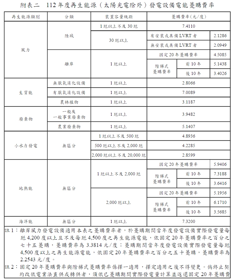 民國(guó)112年(西元 2023年)購(gòu)電費(fèi)率